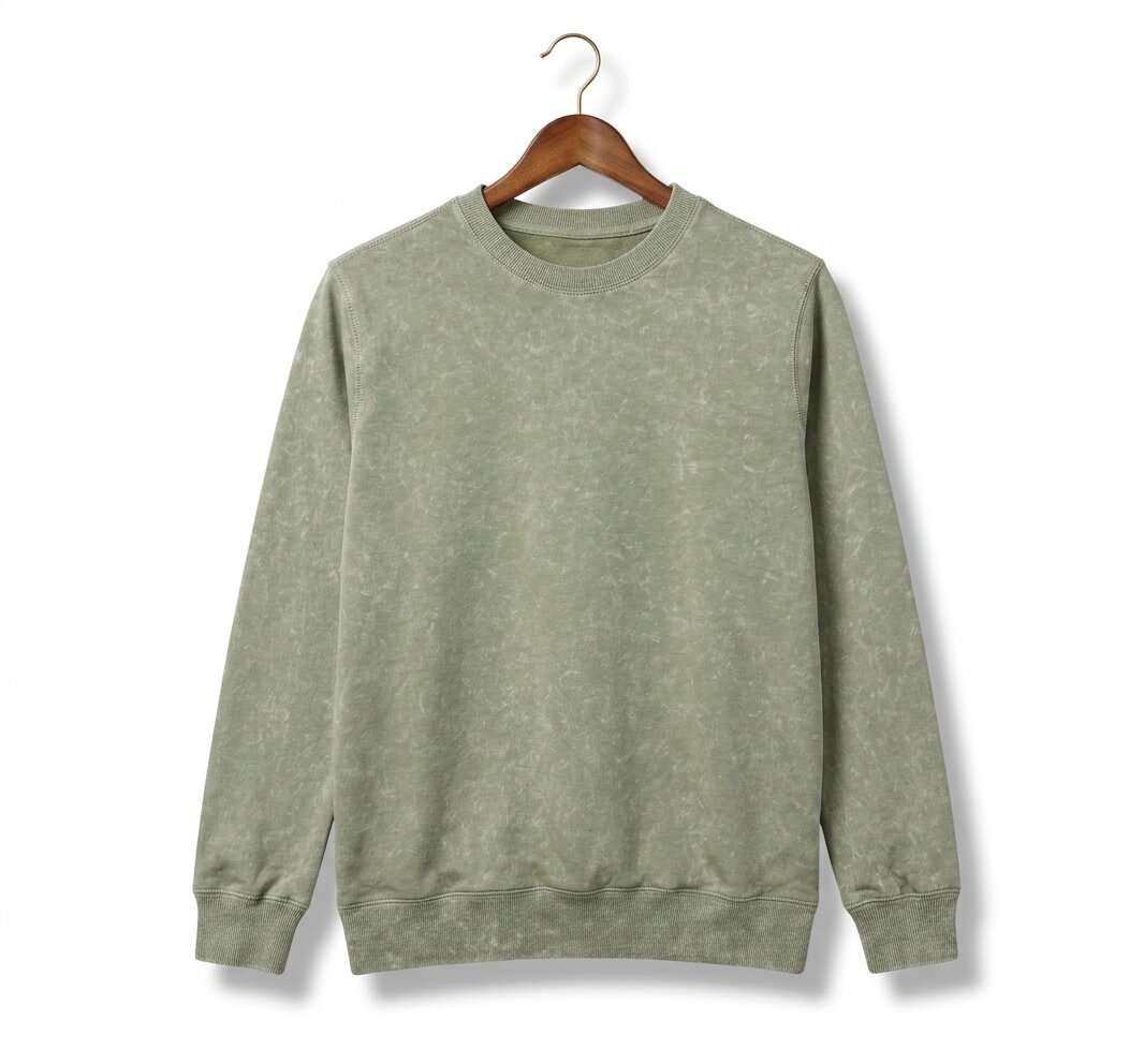 Sweatshirt: 100% Cotton Terry 280 GSM with Acid Wash