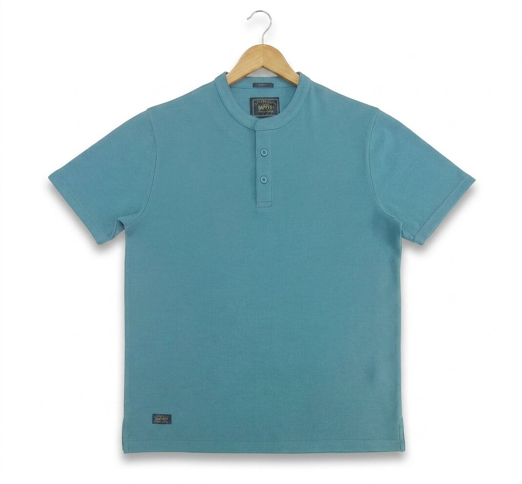 Mandarin Collar Polo: 75% Cotton 25% Filament Interlock 240 GSM
